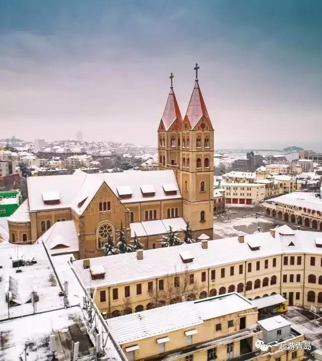 934年建成的聖瀰愛爾大教堂爲例 這是一處56米高的雙塔樓建築 也是青島老城最爲醒目的建築之一 (鼕天的聖瀰愛爾大教堂,攝影師@盧暉) ▼