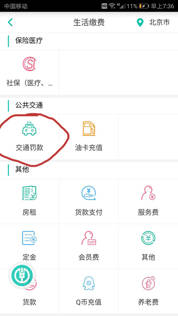 通過中國農業銀行手機App在網上處理交通罰款