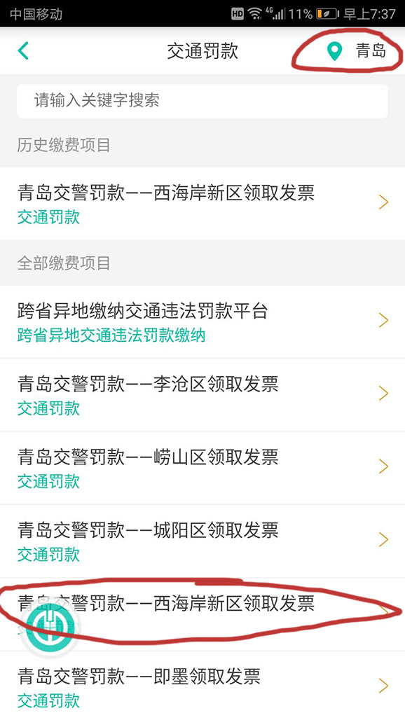 然後根據自己所在的區選擇,我在西海岸新區(黃島)。