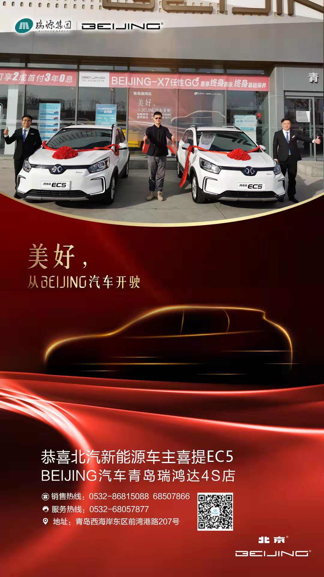 青岛协盛汽车租赁有限公司,喜提北汽电动汽车EC5两辆,用于汽车租赁。
