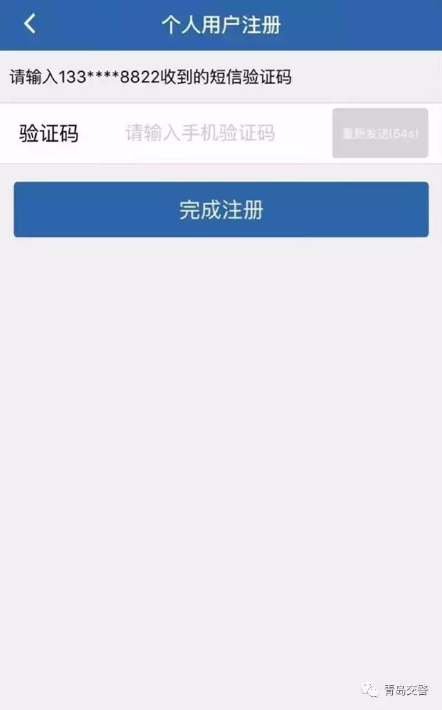 3.输入注册手机收到的验证码后,完成信息注册