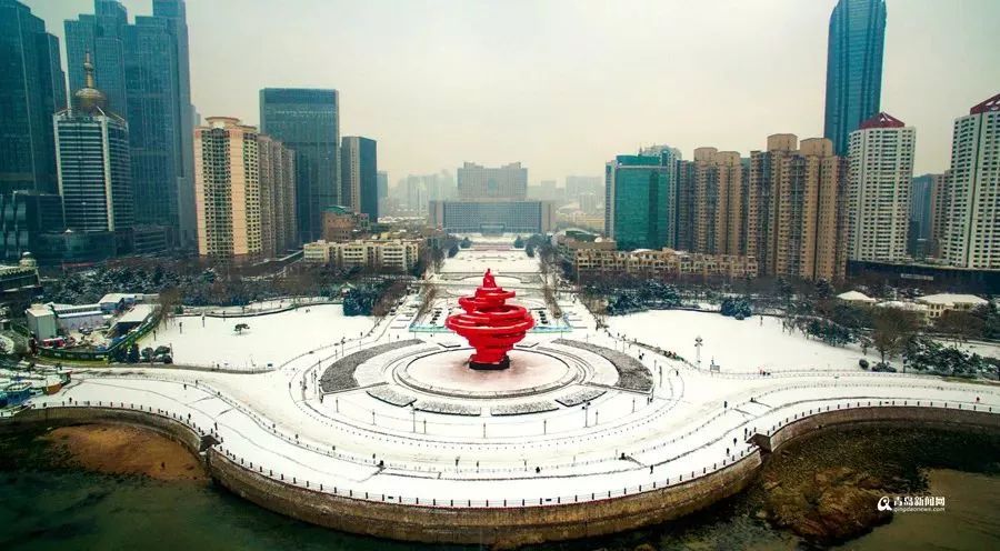雪後青島五四廣場