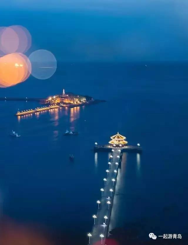 下方爲青島棧橋,始建於1892年,是青島最早的軍事專用人工碼頭建築,現在已成爲青島的標誌之一;上方的島嶼爲小青島,被認爲是“青島”得名之處;攝影師@劉中
