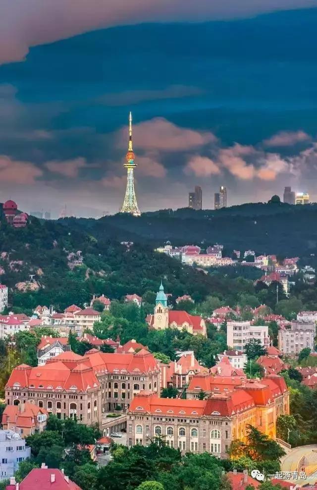 加之青島市區不斷齣現的山地丘陵 建築往往順坡就勢 建築群輪廓連綿起伏、高低錯落 構成瞭令人印象深刻的景觀效果 (山上爲青島電視塔,攝影師@Radiostar)