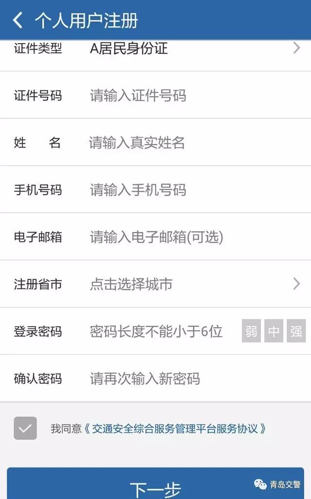 2.根據要求填寫信息,然後點擊“下一步“