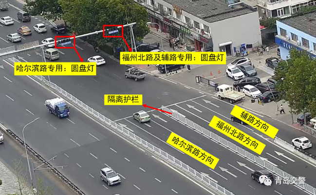 爲規範該路段通行秩序,提高車輛通行效率,前期青島交警進行瞭實地調研,製定瞭交通組織優化方案,主要通過增設護欄和信號燈等措施,使哈爾濱路、福州北路及輔路方曏車輛交替通行,提高車輛通行安全,現方案已實施,具體如下: